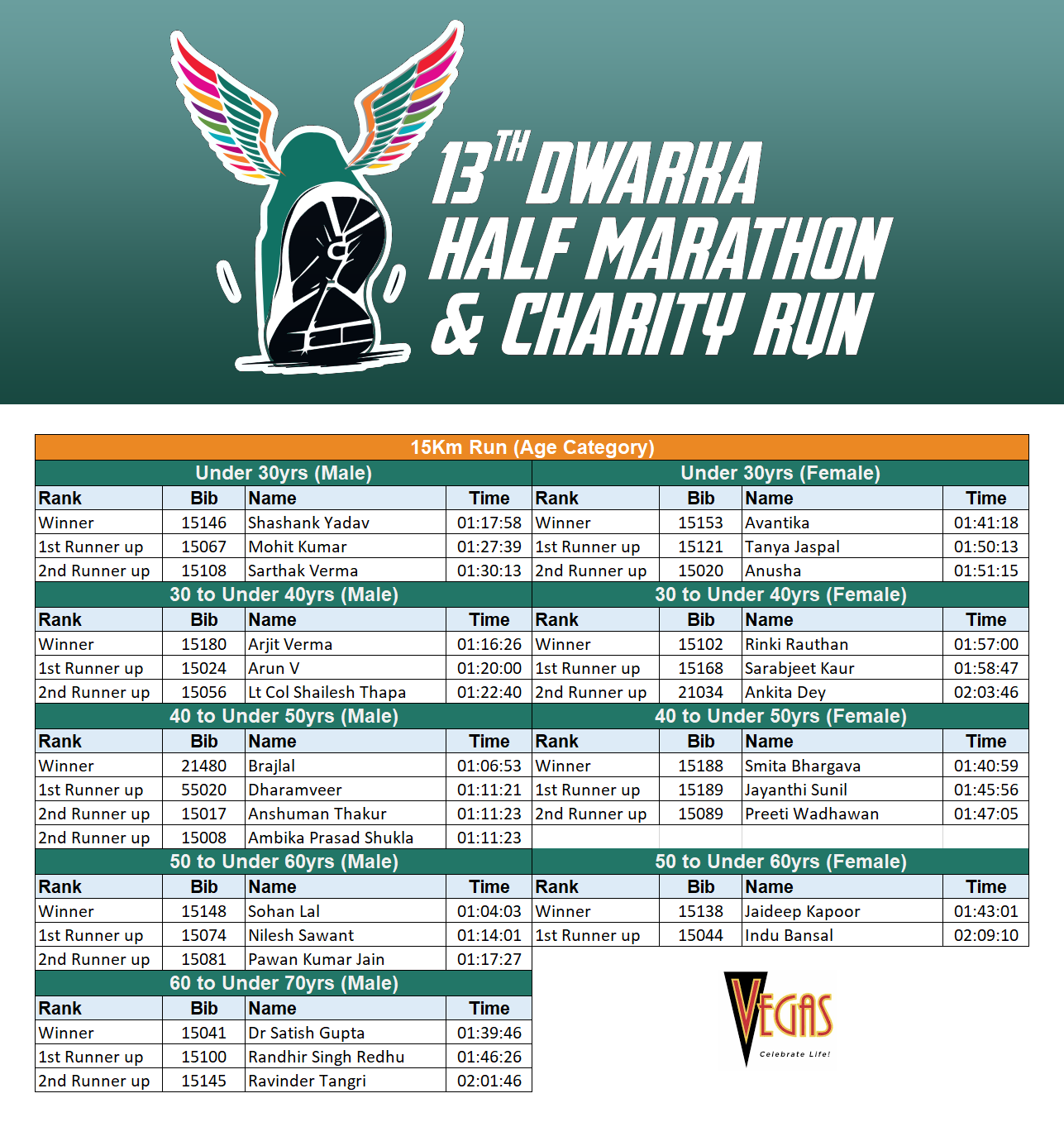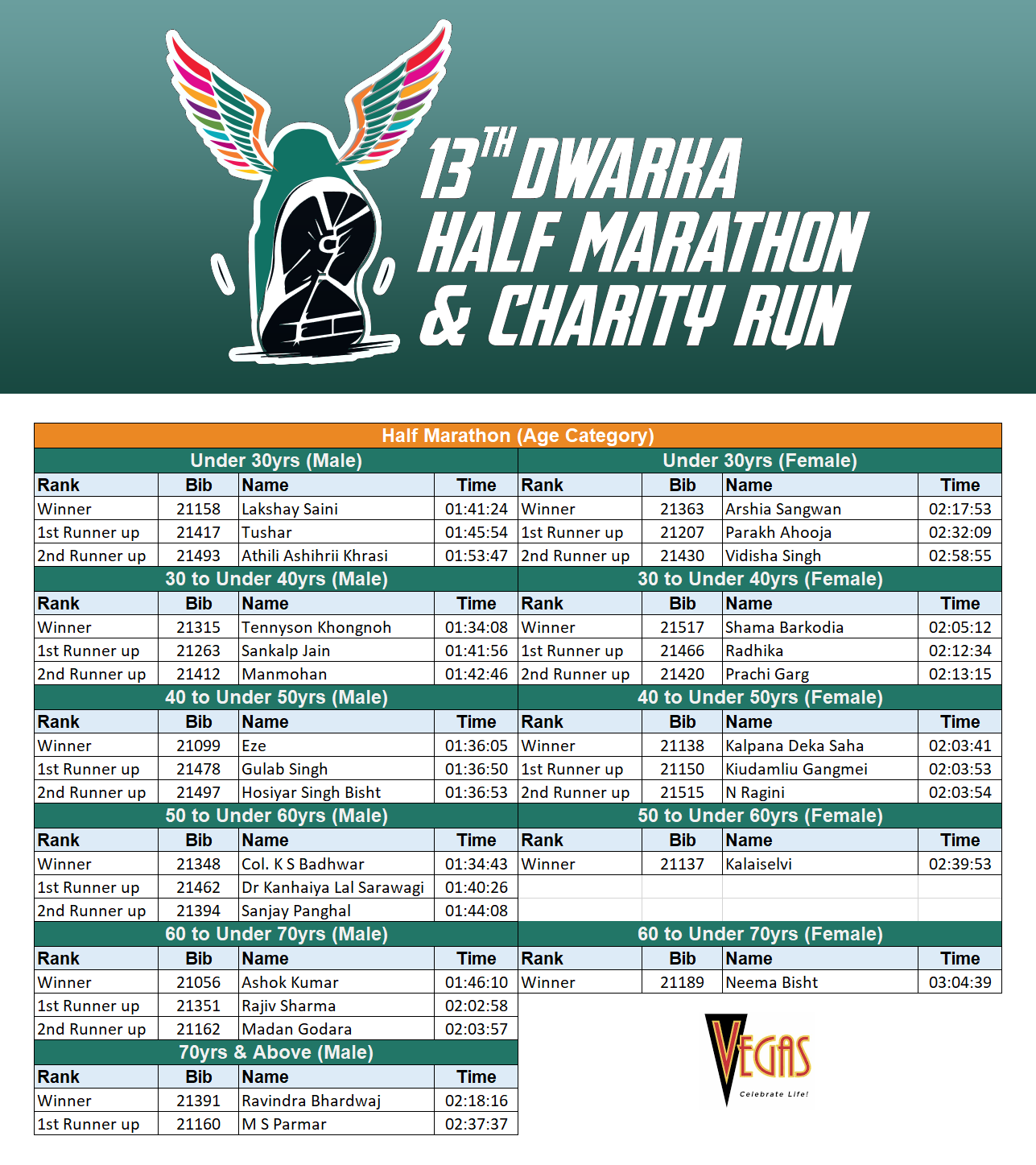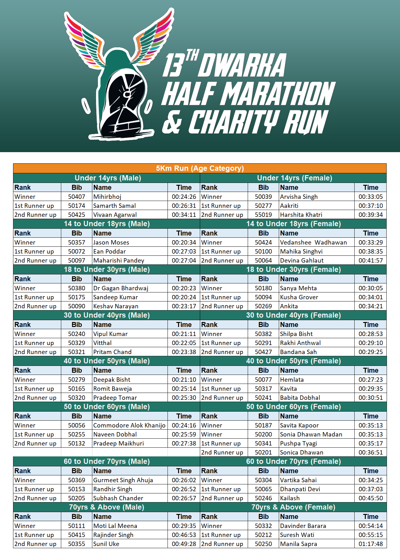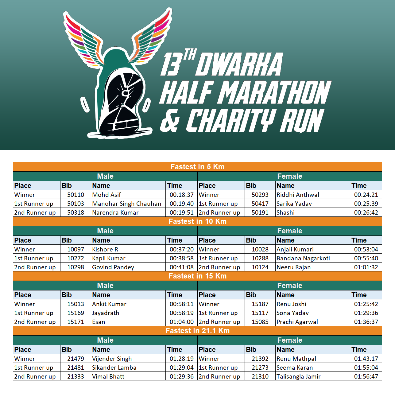 Results 2025 - Dwarka Half Marathon & Charity Run